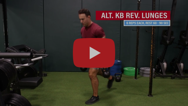 Alternating Kettlebell Reverse Lunges x 6 each, rest 60-90 seconds